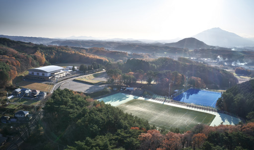岩手町総合運動公園は、野球やサッカー、ホッケー、テニス、柔剣道など多様な競技が行われており、スポーツと自然が融合した健康づくりの場です。また、本町は「ホッケーの町」として知られており、オリンピック選手や日本代表の合宿地としても親しまれています。練習に励む子どもたちの元気な声を耳にしながら、四季折々の自然を感じて歩くことができる、爽快なコースです。