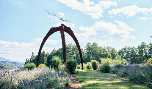 春の山野草、初夏のラベンダー・アジサイ、秋の紅葉など季節の草花や風景が四季の移り変わりを感じさせてくれます。天気の良い日は芝生に寝転び、手足を伸ばして深呼吸を。また、「道の駅石神の丘」と隣接しており、新鮮な地域の産物を楽しむことができます。