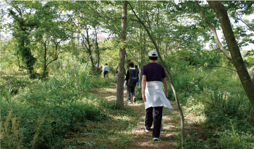 専門ガイドから、「がんばらなくても、倍近い運動効果が期待できる歩き方」をレクチャーしてもらいながら、参加者みんなで楽しく歩く運動です。