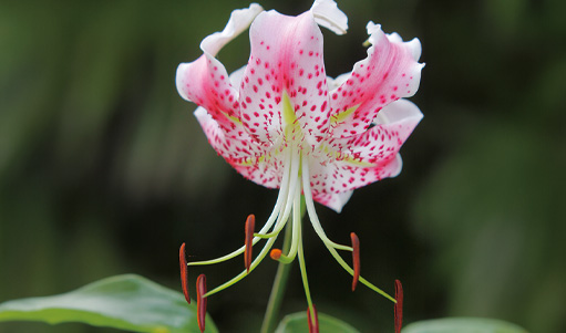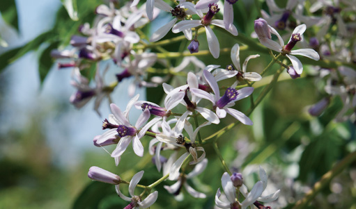 コース途中の広場にある巨木は北米原産のユリノキ。5月中旬、オレンジ色をおびた大きな花を枝先いっぱいに付け、訪れる人の心を癒やしてくれます。広場周辺では、ユリノキ以外にも、ハンカチノキなど外国産の珍しい樹木を見ることができます。